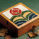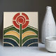 Red Flower Mid-Century Symmetry Arts and Crafts Ceramic Tile