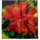 This Shower Curtain brings us the power of a richly bright red flower. In this original photograph by ZoeSPEAK, the red hibiscus flower is soaking up the sunshine, surrounded by the spring green leaves of the bush. The flower petals ripple around yellow dots in the center, making a rich, warm image.
