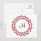 Red flower ring Personalized Monogram Initial Postcard