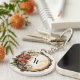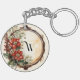 Beautiful keychain with a twig wreath decorated with pretty re flowers, greener and red berries. Add your name or monogram to personalize.