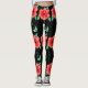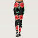 Modern and stylish red flowered fashion statement leggings in black, black can be personalized to any color