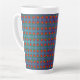 In the original artwork by ZoeSPEAK on this large Latte Mug, the red and yellow flowers with their green leaves form a pattern, suspended over aqua and blue violet stripes on a blue gradient background. For lovers of the blues, and reds and yellows and greens...