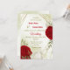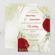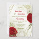 Beautiful wedding invitation featuring red and white flowers and green leaves
