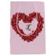 Red Flowers Heart with Monogram Floral Medium Gift Bag