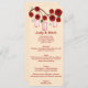 Accentuate your decor by adding a menu card. As your guests look forward to the bride and groom's entrance or the presenting of the guest of honor, they can find a menu card at their setting adds a nice touch. Personalize and create your menu by adding, and changing the text in the fields provided. You can change font style, size, and color, paper type, as well as change the background color.