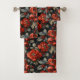 Red flowers on black bath towel set