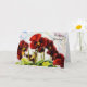 This charming card features my original artwork, consisting of my original photograph of blooming deep red pansies. I applied an oil pastel painterly technique to give it an artistic flair. The front of the card states, "Birthday Greetings!" and the inside of the card states "Hope this day blooms with much happiness! Happy Birthday!". A great card for any flower lover.