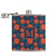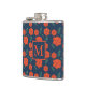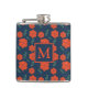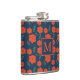 Red Flowers Pattern Dark Blue Monogram Flask