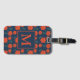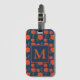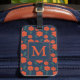 Red Flowers Pattern Dark Blue Monogram Luggage Tag
