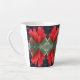 The colorful, original pattern of red flowers on this Latte Mug was created from an original photograph by ZoeSPEAK of an agave plant blooming in the garden. The vermilion red petals of the opening flowers stand out against the agave's soft bluish green, disc-shaped leaves and the dark background.