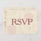 Red Flowers RSVP features a lovely floral background with drawings of red blossoming flowers. On the front of the postcard is "RSVP" written in big burgundy letters.