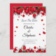 White wedding invitations decorated with red flowers are designed for those who love romance and simple and attractive invitations. Red roses are formed on both sides to give a beautiful appearance. The scenic natural appearance as well as the geometric black line to match the white and red flowers, if you like it, do not hesitate and order now and a happy wedding