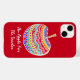 Colorful teacher's iPhone case, done in red, with folk art style graphics of a patterned apple. White text reads, An Apple For The Teacher, and is fully customizable to read what you want. Great way to protect your iPhone and makes an excellent gift to your favorite teacher.