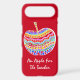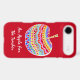Colorful teacher's iPhone 6 case, done in red, with folk art style graphics of a patterned apple. White text reads, An Apple For The Teacher, and is fully customizable to read what you want. Great way to protect your iPhone 6 and makes an excellent gift to your favorite teacher.