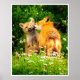 A heartwarming wildlife moment between a red fox mother and her kit, captured in vibrant natural detail. This nature photography print brings warmth, connection, and woodland charm into any space.
