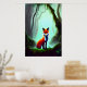 A red fox sitting in the jungle, you tress in the background. This is a AI generated art.