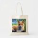 Tote bag with a beautiful wildlife image of a red fox laying down in green grasses. This cute creature has soft fur and gentle eyes. Image has a dreamy magical feel. Personalize with a name.