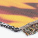 A quality printed throw has its advantages. This is a much finer weave throw than its loopier cousins, and though lighter, it is worth the investment for custom room accessorizing. The back is much prettier than the typical brown, and the fringe on the long sides very vivid, the selvage nicely done. Before photographing, I washed the throw in cold water, delicate, with a thicker woven throw the same size. On tumble dry low, this throw was dry in half the time as the other. This is a very practical quality if you use throws for furniture covers or to wrap up in frequently. The sleekness of the fabric makes it a great layer for accenting or protecting without the feeling of sitting on too much stuff. Perfect for napping or when you feel a light chill coming on. The color printing is beautiful and on this fabric, matched the design and color of my Photoshop image. This is an advantage for blending room fabrics and colors. The fringe on the short sides prints the colors from the design image and therefore varies from the side fringe. I streaked a white fractal line through the plaid pattern to give the illusion of weaving. This printed as crisp as an illusory thread, and put some white in the short side fringe, showing another advantage of print vs loomed- for artistic purposes, line lines, detail, and color integrity can be planned and preserved. My loomed throws have color limitations and more of a needlepoint texture. Print throws reproduce an exact image. The throw felt a little stiff straight out of the package, but this went away in the first delicate wash. Of course I searched the wash water for ink or bleeding and there was none.