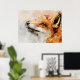 This evocative watercolor portrait captures the quiet intensity and natural elegance of the Red Fox through a fluid, expressive painting style. The composition focuses on the fox’s head in profile, emphasizing its elongated snout, alert ear, and watchful eye. The artist skillfully uses layered washes and splattered pigments to suggest both texture and motion, allowing the subject to emerge organically from the background rather than being rigidly defined.