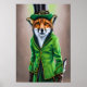 Red fox wearing green clothes | AI Art Poster