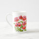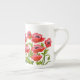Original fine art design of colorful red garden poppies by artist Carolyn McFann of Two Purring Cats Studio printed on a quality bone china mug for floral art fans.