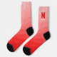 Red geometric mesh pattern Monogram Socks. Personalize gift for him with custom initial and name.
