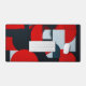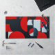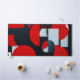 Abstract composition featuring a variety of geometric shapes, including circles and rectangles, rendered in a bold color palette of red, white, and black. The arrangement creates a dynamic visual interplay, with overlapping forms and contrasting colors that draw the eye. The red shapes dominate the canvas, while the white and black elements provide balance and accentuation. The overall effect is modern and striking, evoking a sense of movement and depth in the artwork.