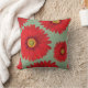 Red Gerba Hand-Painted Teal Throw Pillow
