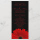 You can personalize all the text on these red gerbera (gerber) daisy flower, black background personalized affordable wedding programs. The design features a bright and cheerful recd gerbera daisy on a black background background. Simple and elegant floral design. NOTE: This is a flat printed design without any raised or 3D embellishments. To change the text, use the personalize options. Or, for more extensive changes (font, font size, font color, text placement), choose customize it. You can even change the black background color is you want. This is a great inexpensive wedding program for a wedding in the spring, summer, fall / autumn or winter or a wedding with a red gerber daisy flower theme.