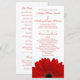 You can personalize all the text on these red gerbera (gerber) daisy flower, white background personalized affordable wedding programs. The design features a bright and cheerful red gerbera daisy on a white background background. Simple and elegant floral design. NOTE: This is a flat printed design without any raised or 3D embellishments. To change the text, use the personalize options. Or, for more extensive changes (font, font size, font color, text placement), choose customize it. You can even change the white background color is you want. This is a great inexpensive wedding program for a wedding in the spring, summer, fall / autumn or winter or a wedding with a red gerber daisy flower theme.
