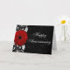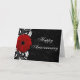 Happy Anniversary greeting card features True Red Gerbera Daisy on black background with white scroll accent. Perfect for winter, fall, spring, summer, any season. Easy to customize it online! Full set includes invitations, rsvp reply cards, thank you cards, envelope seals, photocards, table place cards binders and more!