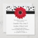 Red Gerbera Daisy with Black Scroll Design Wedding Invitation