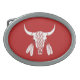 Red Ghost Dance Buffalo oval silver belt buckle
