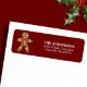 Add a sweet holiday touch to your Christmas cards and packages with these red gingerbread man return address labels. Featuring an adorable gingerbread man illustration and a customizable address field, these labels are perfect for spreading holiday cheer with every piece of mail. Ideal for your holiday correspondence, these charming labels make your Christmas greetings even more festive.