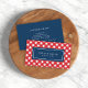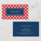 Business card featuring red gingham pattern with a blue center on the front. Card has a matching blue back side. This trendy business card is ideal for various professions like interior designer, chef, baker, blogger, etc.