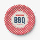 Celebrate the summer with a BBQ party. Impress your guests with this BBQ paper plate featuring a light orange tint center bordered by a red gingham pattern. Check out matching items like invitation, stickers and stamps here https://www.zazzle.com/collections/gingham_bbq_party_collection-119000567419036723?rf=238364477188679314