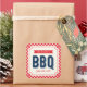 Celebrate the summer with a barbecue party. This BBQ sticker features a light orange tint center bordered by a red gingham pattern. Check out matching items like invitation, stickers and stamps here https://www.zazzle.com/collections/gingham_bbq_party_collection-119000567419036723?rf=238364477188679314