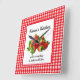 This wall clock would be a thoughtful gift for that special someone who loves to cook. This clock features a country style strawberry design that would be perfect for your country kitchen. Shown with a red gingham background then the center has a bunch of strawberries and an area for your text.