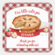 Celebrate the apple of your eye on their birthday with this apple cutie pie party sticker. An apple pie rendered in a watercolor effect has a slice taken out of it. Eggs, apples, and a napkin are placed around the pie against a red gingham background. Their name stands out in a bright red banner. Use on favors as a thank you sticker or as envelope seals for a cutie pie or apple pie-themed first, second, or third birthday party, baby shower, or sprinkle. Available with matching products.