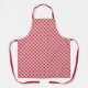 Great color and even though I ordered the kid size, it covers well enough to use during the holidays. I am not a big woman and prefer a shorter apron. I stand 5"6" and the length of the garment goes to mid-thigh. The tie straps fit well at my waist and even though there is no neck strap adjustment, the opening is plenty big enough. I am happy with the size and fit. I am sharing my apron with my 10 year old grandson, too! The color is vibrant and looks good, as shown on the website. The stitching looks strong and reinforced. Photographed is front side and back side of the apron, reinforced straps and coloring. My phone camera may not be the best at showing the details.