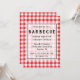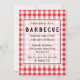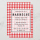BBQ party invitations with a rustic red gingham pattern background.Personalize with your backyard party details for a fun filled family get together.