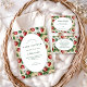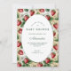 A sweet and timeless baby shower design featuring a soft cream center framed by a lush strawberry vine pattern. This botanical cottage-garden style combines gentle greenery, delicate berries, and a warm vintage tone for an inviting, storybook feel. Perfect for spring or summer celebrations, this design adds natural charm and a fresh, feminine touch to your baby shower. All details can be personalized to match your event.