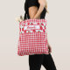 Red Gingham Check and Strawberries Monogrammed Tote Bag