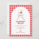 This playful invitation features a bold red gingham check, a watercolor champagne glass topped with cherries, and a cute ribbon bow — the perfect mix of cozy picnic vibes and girls’ night sparkle.