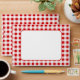 These cute invitations and coordinating items are printed with a red gingham pattern. Click "customize it" to change the white background to your favorite color.