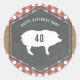 Red Gingham Pig Burlap Birthday Bbq Classic Round Sticker