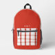 Red Gingham Plaid Personalized Name Initials Printed Backpack