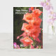 Birthday card featuring a beautiful red gladioli flower spike in the summer sunshine. Template text can be personalised to add a name of your choice and a message of your choice inside. Check out my other flower products in my store.