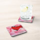 Red Glass Heart Rose Petals Beverage Coaster
