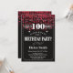 Red Glitter 100th Birthday Invitation. White Typography. Black and White Chalkboard Background. Adult Birthday. Male Men or Women Birthday. Kids Boy or Girl Lady Teen Teenage Bday Invite. 13th 15th 16th 18th 20th 21st 30th 40th 50th 60th 70th 80th 90th 100th. Any Age. For further customization, please click the "Customize it" button and use our design tool to modify this template.
